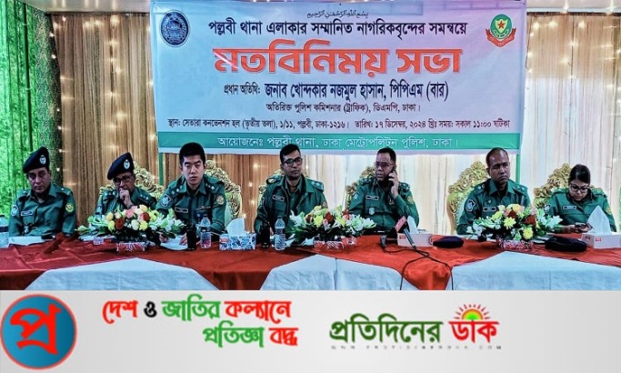 পল্লবী থানাধীন এলাকার নাগরিকবৃন্দের সমন্বয়ে ১৭ ডিসেম্বর (মঙ্গলবার) সকাল ১১টায় মিরপুর সারে এগারো সেতারা কনভেনশন হলে পুলিশের মত বিনিময় সভা অনুষ্ঠিত হয়েছে। উক্ত মতবিনিময় সভায় পল্লবী থানাধীন এলাকার নানা সমস্যা ও সমাধান এবং করণীয় বিষয়বস্তু নিয়ে পুলিশের সাথে কথা বলেছেন এলাকাবাসী। এ মতবিনিময় সভায় প্রধান অতিথি হিসেবে উপস্থিত ছিলেন ডিএমপির অতিরিক্ত পুলিশ কমিশনার (ট্রাফিক) খোন্দকার নজমুল হাসান, পিপিএম (বার)।