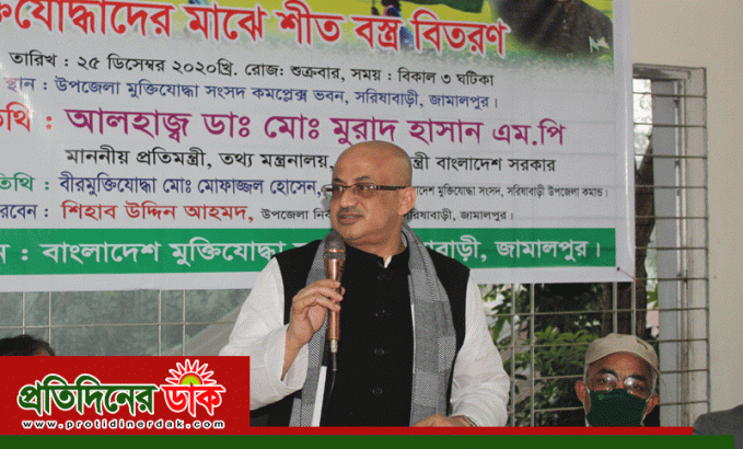 তথ্য প্রতিমন্ত্রী মুরাদ হাসান বলেছেন, সে সময় কোনো সেনাবাহিনীর বাঁশির ফুঁতে দেশ স্বাধীন হয়নি। বাংলাদেশ স্বাধীন হয়েছে জাতির পিতা বঙ্গবন্ধু শেখ মুজিবুর রহমানের নেতৃত্বে যুদ্ধ করে। বাংলাদেশ স্বাধীনতা লাভ করার আগে অনেক নেতার আহ্বানে বিপ্লব সংঘটিত হয়েছিল তারা দেশ স্বাধীন করতে পারে নাই। এ দেশের মুক্তিকামী মানুষদের সাথে নিয়ে জাতির পিতা আন্দোলন শুরু করলে তখন তারা পিছু হঠতে লাগল। দেশের এই সূর্য সন্তানদের অধিকার থেকে বঞ্চিত করে রেখেছিল জামাত-বিএনপি সরকার। বঙ্গবন্ধুর কন্যা প্রধানমন্ত্রী শেখ হাসিনা মুক্তিযোদ্ধাদের সকল সুযোগ সুবিধা প্রধান করেছে। শুক্রবার সন্ধ্যায় জামালপুরের সরিষাবাড়ীতে মহান বিজয় দিবস উপলক্ষে মুক্তিযোদ্ধা ও শহিদ মুক্তিযোদ্ধা পরিবারের মাঝে শীতবস্ত্র বিতরণকালে তিনি এ কথা বলেন।