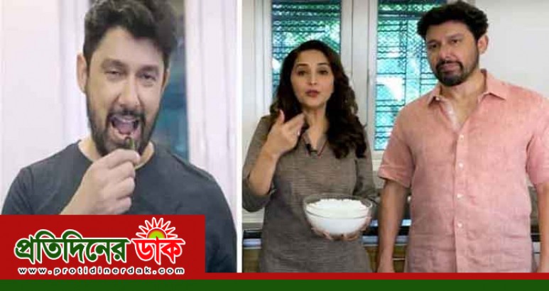 নিজের ইনস্টাগ্রামে শেয়ার করা ভিডিওতে দেখা গেছে, স্বামীকে নিয়ে রান্না করাচ্ছেন মাধুরী। রান্নার ফাঁকেই স্বামী কাঁচা মরিচ খেতে বাধ্য করেন তিনি। মহারাষ্ট্রের বিখ্যাত ডিস ‘কান্দা পোহা’ বানিয়েছেন মাধুরীর স্বামী নেনে।