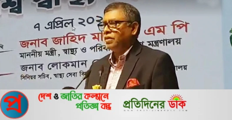 বৃহস্পতিবার (৭ এপ্রিল) রাজধানীর ওসমানী স্মৃতি মিলনায়তনে আয়োজিত বিশ্ব স্বাস্থ্য দিবস উদযাপন উপলক্ষে জাতীয় পর্যায়ে অনুষ্ঠান উদ্বোধনকালে স্বাস্থ্য ও পরিবার কল্যাণমন্ত্রী জাহিদ মালেক এ কথা বলেন।