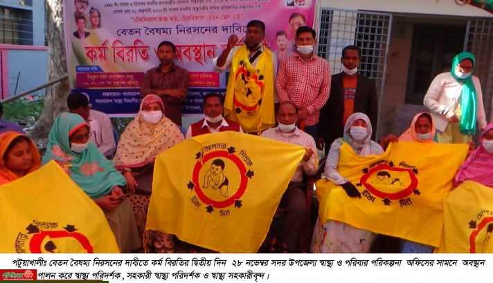 পটুয়াখালীতে স্বাস্থ্য সহকারীদের কর্মবিরতি পালন অব্যাহত