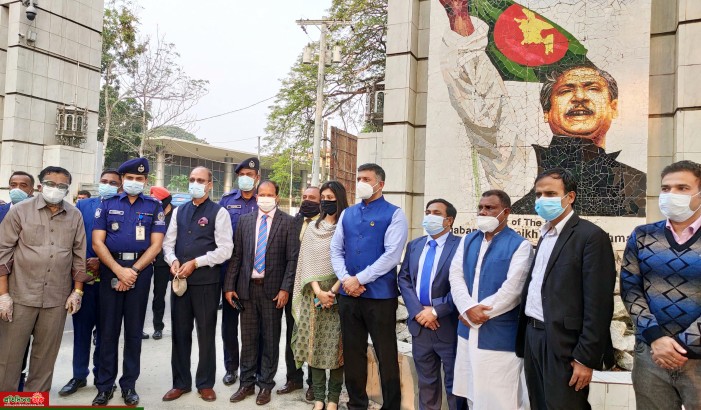 সংগঠনের নেতৃবৃন্দরা। ভারতীয় হাই কমিশনারের সফর সঙ্গী ছিলেন, ভারতীয় সহকারী হাই কমিশনার আর কে রায়না ও ভারতীয় হাইকমিশনারের সহধর্মিনী।