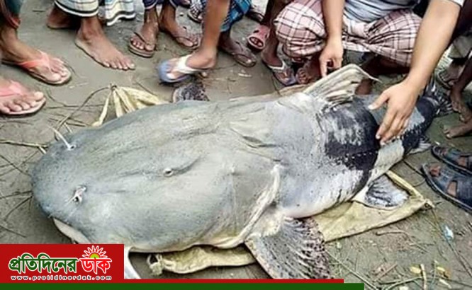 মুন্সীগঞ্জের লৌহজং উপজেলার পদ্মা নদীতে এক জেলের জালে ৮০ কেজি ওজনের একটি বাঘাইড় মাছ ধরা পড়েছে। বুধবার (১৭ ডিসেম্বর) ভোররাতে উপজেলার হলদিয়া সিংগার হাটি গ্রামের মো. জহিরের জালে মাছটি ধরা পড়ে। জানা যায়, সকাল ৬টায় জেলেরা মাছটি বিক্রির উদ্দেশে মাওয়া ঘাটের মৎস্য আড়তে নিয়ে আসেন। এ সময় উৎসুক জনতা মাছটি দেখতে ওই আড়তে ভিড় জমায়।