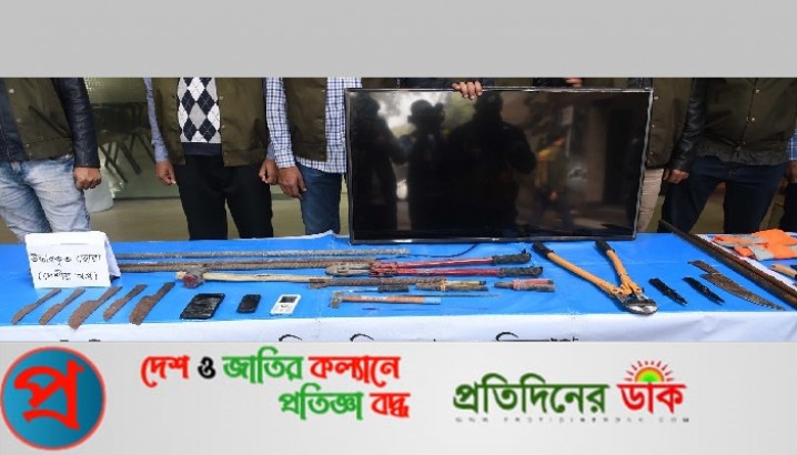 এসময় গ্রেপ্তারকৃতদের থেকে ডাকাতি, চুরি ও ছিনতাইয়ে ব্যবহৃত চাপাতি, চাকু, ছোরা, হাইড্রোলিক কাটার, তালা ভাঙ্গার রড, হাতুরি, প্লাস, স্ক্র ড্রাইভার, হেসকো ব্লেড, গ্রিল ও তালা কাটারসহ বিভন্ন সরঞ্জামাদি উদ্ধার করা হয়।