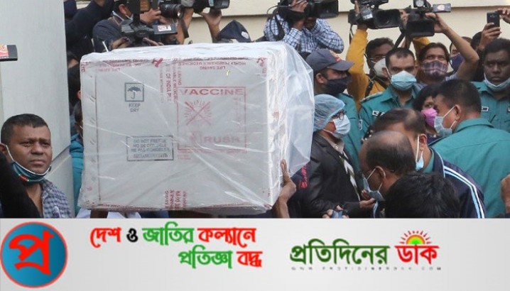 ফ্রিজার ভ্যানে দেশের জেলায় জেলায় যাচ্ছে ভারত থেকে আনা করোনা ভাইরাসের টিকার প্রথম চালান। গতরাত থেকে কড়া নিরাপত্তায় ৩৪ জেলায় পাঠানো হয় ২৬ লাখ ৪ হাজার ডোজ টিকা। স্বাস্থ্যকর্মীদের প্রশিক্ষণের পর সরকারি নির্দেশনা পেলেই টিকা প্রদান শুরু হবে বলে জানিয়েছেন স্বাস্থ্য সংশ্লিষ্টরা।বৃহস্পতিবার (২৮ জানুয়ারি) সন্ধ্যায় গাজীপুরের বেক্সিমকো ফার্মার ওয়্যারহাউজ থেকে পাঠানো শুরু হয় ভারতের সেরাম ইনস্টিটিউট থেকে আনা করোনার টিকা। কড়া নিরাপত্তায় শুক্রবার সকাল পর্যন্ত ৩৪টি জেলার উদ্দেশে রওনা হয় ২৬ লাখ ৪ হাজার ডোজ ভ্যাকসিনবাহী ফ্রিজাব ভ্যান।