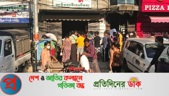 ব্যাংক বন্ধ, নিত্যপণ্য কেনার হিড়িক মিয়ানমারে