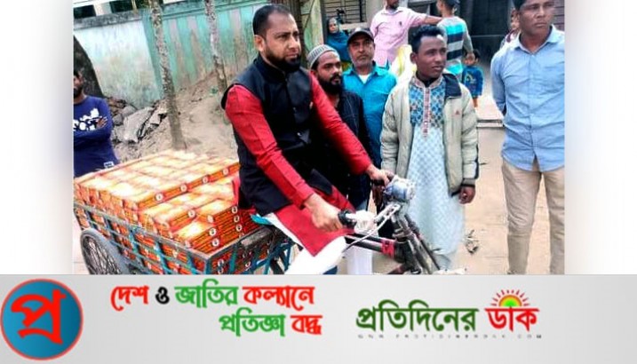গতকাল মঙ্গলবার দুপুরে বিজয়ের খুশিতে নিজেই মিষ্টি বোঝাই ভ্যান চালিয়ে পৌঁছে দেন ভোটারদের ঘরে ঘরে। ভ্যান চালিয়ে মিষ্টি বিতরণের এমন একটি ছবি সামাজিক যোগাযোগ মাধ্যমে ভাইরাল হয়েছে। যে ভিডিও প্রশংসা কুঁড়িয়েছে সকল স্তরের মানুষের।