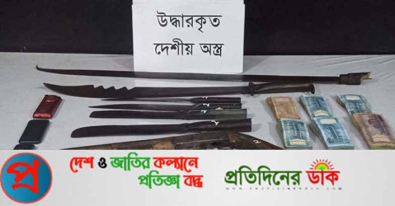 তাদের কাছ থেকে একটি ওয়ানশুটার গান, একটি থ্রি কোয়ার্টার গান, দুইটি চাপাতি, দুইটি চাকু, একটি তলোয়ার, একটি কিরিচ এবং ৮৫ লিটার চোলাইমদ উদ্ধার করা হয়েছে।