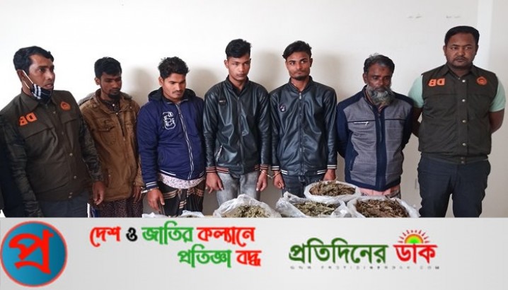 পুলিশ কর্মকর্তা ইমাম জাফর বলেন, শুক্রবার দিনগত রাতে ১১টার দিকে গোপন সংবাদের ভিত্তিতে দিনাজপুরের কাহারোল উপজেলার দিনপূর্ব সাদিপুর হেলেনচাকুড়ি গ্রামের মজিবর রহমান গোয়ারের বাড়িতে অভিযান চালানো হয়। এ সময় ঘরের মেঝের নিচে বিশেষ কায়দায় লুকিয়ে রাখা ৫টি সাদা পলিথিন থেকে ১০ কেজি গাঁজা ও গাঁজা বিক্রি ২৯ হাজার ৫০০ টাকাসহ ৬ জনকে গ্রেপ্তার করা হয়।