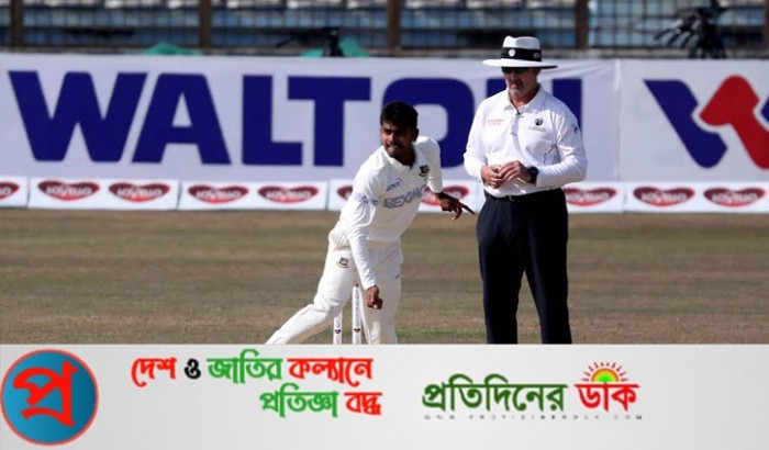উইন্ডিজের বিপক্ষে চট্টগ্রাম টেস্টের চতুর্থ দিন ব্যাট-বল হাতে কর্তৃত্ব দেখিয়েছে বাংলাদেশ। ব্যাট হাতে শতক হাঁকিয়েছেন মুমিনুল হক, হাফ সেঞ্চুরির দেখা পেয়েছেন লিটন দাস। দ্বিতীয় ইনিংসে এই দুজনের দুর্দান্ত ব্যাটিংয়ে ৩৯৪ রানের বিশাল লিড দেয় স্বাগতিকরা। লক্ষ্যে খেলতে নেমে মিরাজের ঘূর্ণিতে ৩ উইকেট হারিয়ে ফেলে সফরকারীরা। চতুর্থ দিন শেষে ৩ উইকেট হারিয়ে উইন্ডিজের সংগ্রহ ১১০ রান। ক্রিজে আছেন কাইল মায়ার্স ও এনক্রুমা বোনার। উইন্ডিজ এখনো পিছিয়ে আছে ২৮৫ রানে। জয়ের জন্য বাংলাদেশের প্রয়োজন ৭ উইকেট। হাতে এখনো আছে পুরো একদিন।