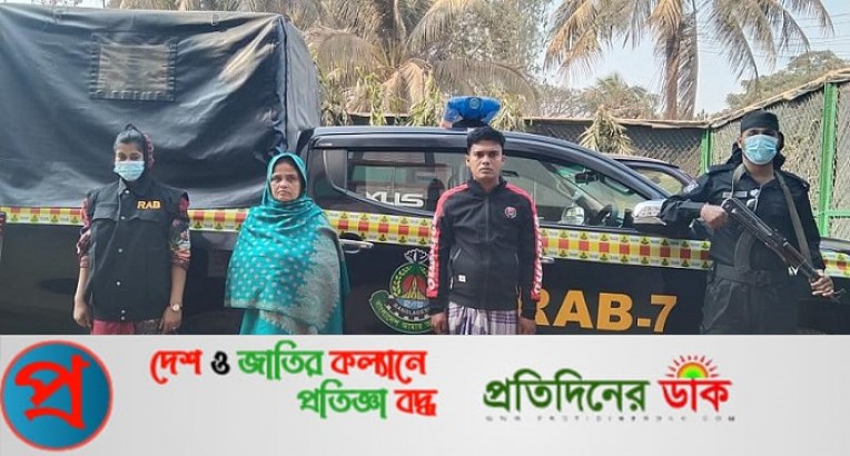 গ্রেপ্তারকৃতরা হলেন, বড় উঠান দৌলতপুরের (মীর বাড়ির) মৃত মাহমুদুল হকের স্ত্রী শামসুন নাহার (৫৫) ও তার ছেলে এরফানুল হক মারুফ (২৫)।
