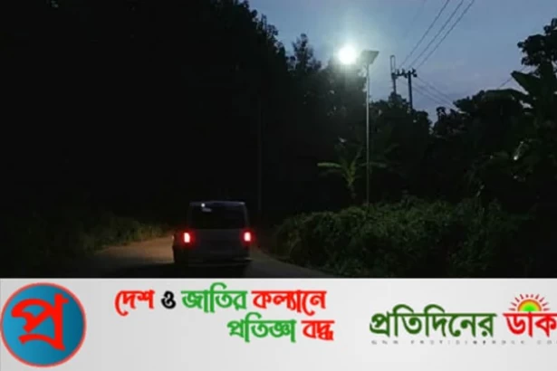 রাঙ্গামাটির ১৩ কিলোমিটার পাহাড়ি পথে সৌর বিদ্যুতের আলোয় জ্বলছে সড়ক বাতি