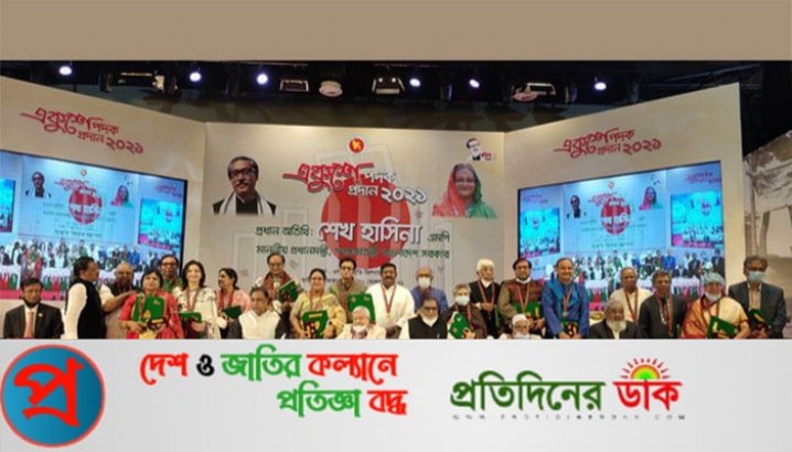 বিভিন্ন ক্ষেত্রে অবদানের স্বীকৃতি হিসেবে ২১ বিশিষ্ট ব্যক্তির মাঝে একুশে পদক-২০২১ বিতরণ করেছেন প্রধানমন্ত্রী শেখ হাসিনাতিনি তার সরকারি বাসভবন গণভবন থেকে ভার্চুয়ালি অনুষ্ঠানে যোগ দেন। তার পক্ষ থেকে পদক হস্তান্তর করেন মুক্তিযুদ্ধ বিষয়ক মন্ত্রী আ ক ম মোজাম্মেল হক। রাজধানীর ওসমানী স্মৃতি মিলনায়তনে সংস্কৃতিবিষয়ক মন্ত্রণালয় আয়োজিত পদক বিতরণ অনুষ্ঠানে সভাপতিত্ব করেন সংস্কৃতি বিষয়ক প্রতিমন্ত্রী কেএম খালিদ। খবর ইউএনবির মোতাহার হোসেন তালুকদার (মরণোত্তর), শামছুল হক (মরণোত্তর) ও অ্যাডভোকেট আফসার উদ্দীন আহমদ (মরণোত্তর) ভাষা আন্দোলনে তাদের ভূমিকার জন্য পদক পেয়েছেন। বেগম পাপিয়া সারোয়ার সংগীতে, রাইসুল ইসলাম আসাদ ও সালমা বেগম সুজাতা অভিনয়ে, আহমেদ ইকবাল হায়দার নাটকে এবং সৈয়দ সালাউদ্দিন জাকী চলচ্চিত্রে অবদানের জন্য সম্মাননা লাভ করেছেন। ড. ভাস্বর বন্দ্যোপাধ্যায় আবৃত্তিতে, পাভেল রহমান আলোকচিত্রে এবং গোলাম হাসনায়েন, ফজলুর রহমান খান ফারুক ও সৈয়দা ইসাবেলা (মরণোত্তর) মুক্তিযুদ্ধে রাখা অবদানের স্বীকৃতি পেয়েছেন।