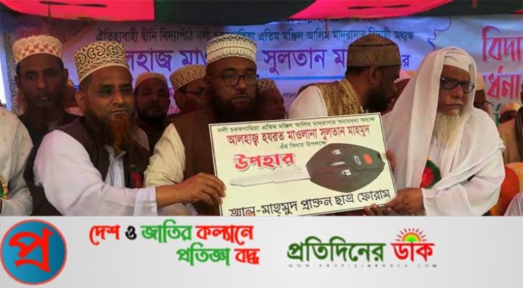 প্রিয় শিক্ষকের বিদায়ী অনুষ্ঠানে উপস্থিত ছিলেন মাদ্রাসার প্রাক্তন শিক্ষার্থী ভোলা জেলা ও দায়রা জজ আদালতের যুগ্ম জেলা ও দায়রা জজ মো. জাকারিয়া। তিনি বলেন, “মাওলানা সুলতান মাহমুদ এমন একজন শিক্ষক, যিনি প্রতিষ্ঠানটিকে ভালোবেসেছেন মায়ের মত করে। শিক্ষার্থীদের শুধু পড়াশোনাই না, সন্তানের মত যত্নে লালন করে আদর্শ, নৈতিকতা ও মানুষ হিসেবে গড়ে তুলেছেন। মহান এই শিক্ষকের বিদায়ে আমরা তাকে উপহার দেব এমন কিছু নেই। তবুও সবার পরামর্শে তাকে আমরা একটি গাড়ি উপহার দিয়েছি।”