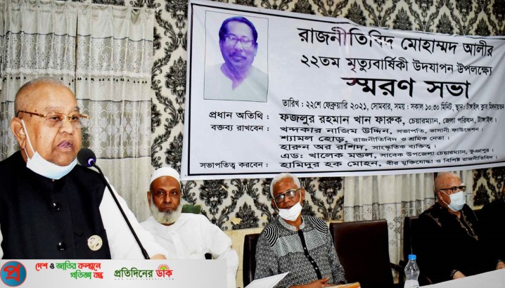 বক্তারা বলেন, মজলুম জননেতা মওলানা ভাসানীর আদর্শে দীক্ষিত শ্রমিক নেতা মোহাম্মদ আলী আজীবন শ্রমিকদের অধিকার আদায়ে সোচ্চার থেকেছেন। জেলার বিড়ি শ্রমিকদের ন্যায্য দাবি আদায়ে তিনি অনশন পালন করে দৃষ্টান্ত স্থাপন করেন। গড্ডালিকায় গা ভাসিয়ে না দিয়ে তিনি সারা জীবন সাধারণ জীবন-যাপন করেছেন। স্মরণসভায় জেলার বিভিন্ন রাজনৈতিক দলের নেতাকর্মী, শ্রমিক ফেডারেশনের নেতৃবৃন্দ, বিড়ি শ্রমিক সংগঠনের নেতাকর্মীসহ বিভিন্ন শ্রেণি-পেশার প্রতিনিধিরা উপস্থিত ছিলেন।