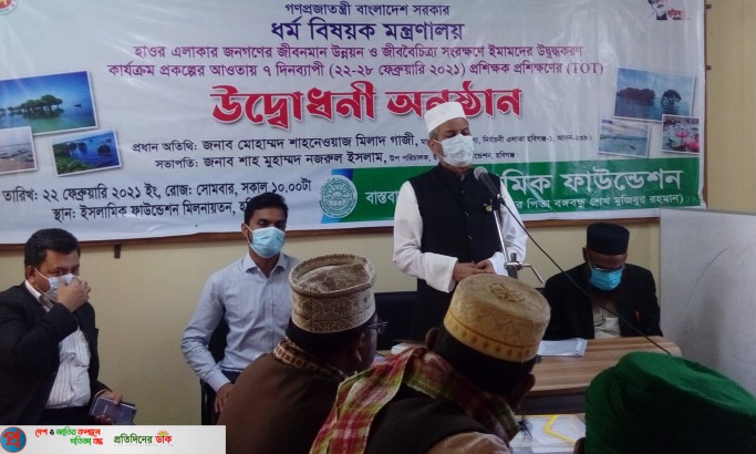 ২২ ফেব্রুয়ারি সোমবার হবিগঞ্জে গণপ্রজাতন্ত্রী বাংলাদেশ সরকার ধর্মবিষয়ক মন্ত্রণালয় এর 'হাওর এলাকার জনগণের জীবনমান উন্নয়ন ও জীববৈচিত্র্য সংরক্ষণে ইমাম ও খতীবদের মাধ্যমে উদ্বুদ্ধকরণ' প্রকল্পের আওতায় ৭ দিনব্যাপি প্রশিক্ষক প্রশিক্ষণের উদ্বোধন করা হয়েছে। উক্ত উদ্বোধনী অনুষ্ঠানে প্রধান অতিথি হিসাবে উপস্থিত ছিলেন হবিগঞ্জ ১নং আসনের মাননীয় সংসদ সদস্য জনাব মোহাম্মদ শাহনেওয়াজ মিলাদ গাজী সাহেব, সভাপতি হিসাবে উপস্থিত ছিলেন- জনাব শাহ মুহাম্মদ নজরুল ইসলাম, উপ পরিচালক ইসলামিক ফাউন্ডেশন, হবিগঞ্জ।