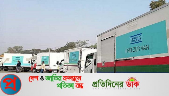 পরে রাতে বিমানবন্দরের ৮ নম্বর গেটে বেক্সিমকো ফার্মাসিউটিক্যালসের ৫টি বিশেষ ফ্রিজার কাভার্ডভ্যান এসে পৌঁছায়। এরপর একে একে এই ভ্যানগুলো ৮ নম্বর গেট দিয়ে বিমানবন্দরের রানওয়েতে প্রবেশ করে।