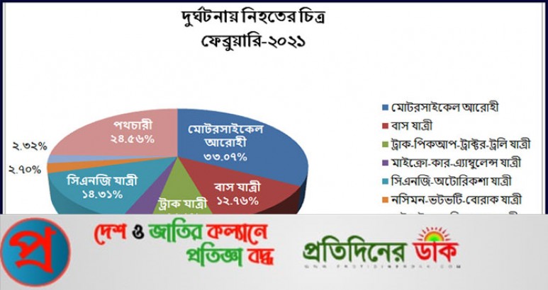 ফেব্রুয়ারি মাসে দেশে ৪০৬টি সড়ক দুর্ঘটনায় ৫১৭ জন নিহত
