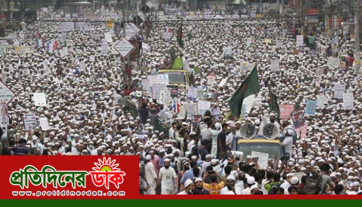 এর আগে সকাল ১১টায় সমাবেশ শুরু হলেও তার আগেই বায়তুল মোকাররমের সামনে জড়ো হতে থাকেন সংগঠনটির নেতাকর্মীরা। কিছু সময়ের মধ্যেই ওই এলাকা লোকে-লোকারণ্য হয়ে পড়ে। দুপুর ১২টা ১৫ মিনিটে রাজধানীর পল্টন মোড় থেকে ফ্রান্স দূতাবাস ঘেরাও কর্মসূচির মিছিল শুরু হয়। মিছিলে নেতৃত্ব দেন হেফাজতের শীর্ষনেতা আল্লামা জুনায়েদ বাবুনগরী।