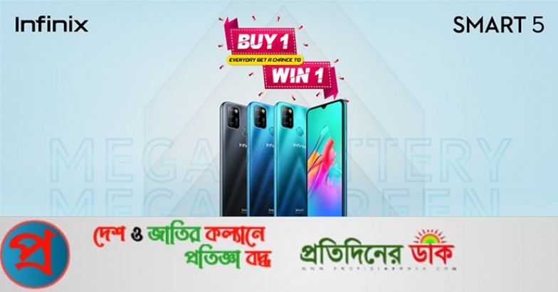 একটি স্মার্ট ৫ কিনলে আরেকটি স্মার্ট ৫ স্মার্টফোন জেতার সুযোগ দিচ্ছে ইনফিনিক্স।