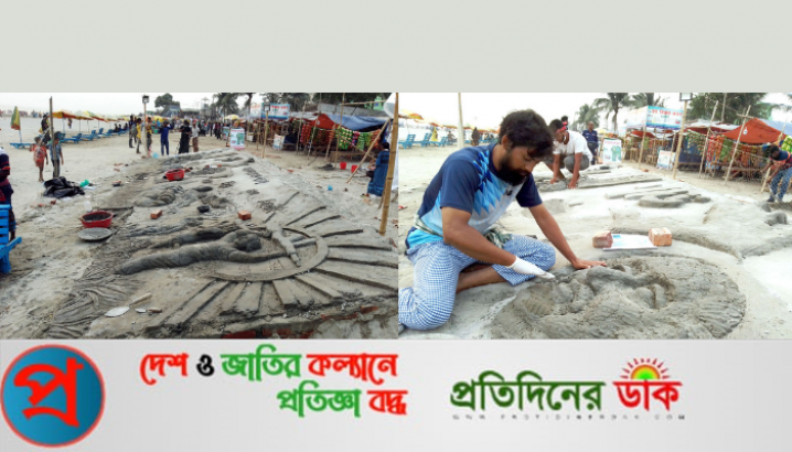 বালুর ভাস্কর্য তৈরি করা হলো কুয়াকাটা সৈকতে