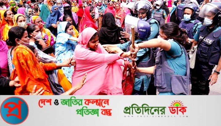 কর্মী ছাঁটাইয়ের প্রতিবাদ ও চার মাসের বকেয়া বেতন পরিশোধের দাবিতে রাজধানীর তেজগাঁওয়ে বিক্ষোভ করেছেন পোশাকশ্রমিকেরা।
