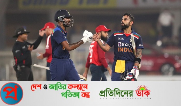 শনিবার (২০ মার্চ) নরেন্দ্র মোদি স্টেডিয়ামে সিরিজ নির্ধারণী শেষ টি-টোয়েন্টি ম্যাচে ভারত জিতে ৩৬ রানে। বিরাট কোহলির ঝোড়ো ইনিংসে ২২৪ রানের পাহাড় গড়ে ভারত। সেই পাহাড় টপকাতে পারেনি ইংলিশরা। শেষ পর্যন্ত তাদের ইনিংস থামে ১৮৮ রানে। হাতে ছিল মাত্র ২ উইকেট।