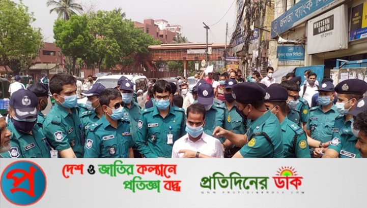 ফার্মগেট এলাকায় প্রায় পাঁচ হাজার মানুষের মাঝে মাস্ক বিতরণ করে পুলিশ।