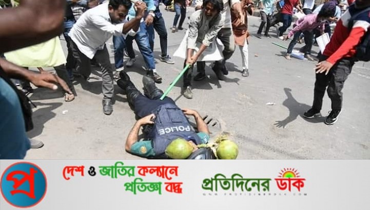 এদিকে ঢাকা মেট্রোপলিটন পুলিশের (ডিএমপি) মতিঝিল বিভাগের অতিরিক্ত উপ-কমিশনার (এডিসি) মিন্টু কুমার বলেন, বিক্ষোভকারীরা মিছিল নিয়ে শাপলা চত্বর এলে পুলিশ সদস্যরা বাধা দেওয়ার চেষ্টা করেন। এসময় বিক্ষোভকারীরা পুলিশের ওপর আক্রমণ শুরু করে। এতে আমাদের বেশ কয়েকজন পুলিশ সদস্য আহত হয়েছেন। একজন গুরুতর আহত।