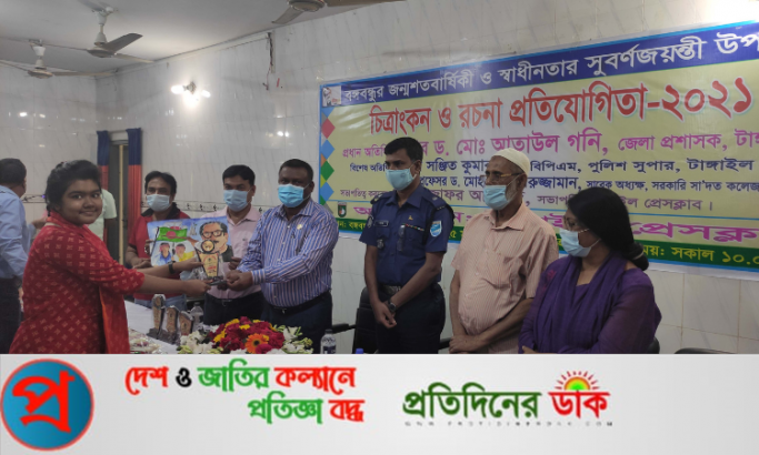 বঙ্গবন্ধুর জন্মশতবার্ষিকী ও স্বাধীনতা সুবর্ণজয়ন্তী উপলক্ষে টাঙ্গাইলে চিত্রাঙ্কন ও রচনা প্রতিযোগিতা অনুষ্ঠিত হয়েছে। বৃহস্পতিবার দুপুরে টাঙ্গাইল প্রেসক্লাবের উদ্যোগে এ প্রতিযোগিতায় অনুষ্ঠিত হয়।